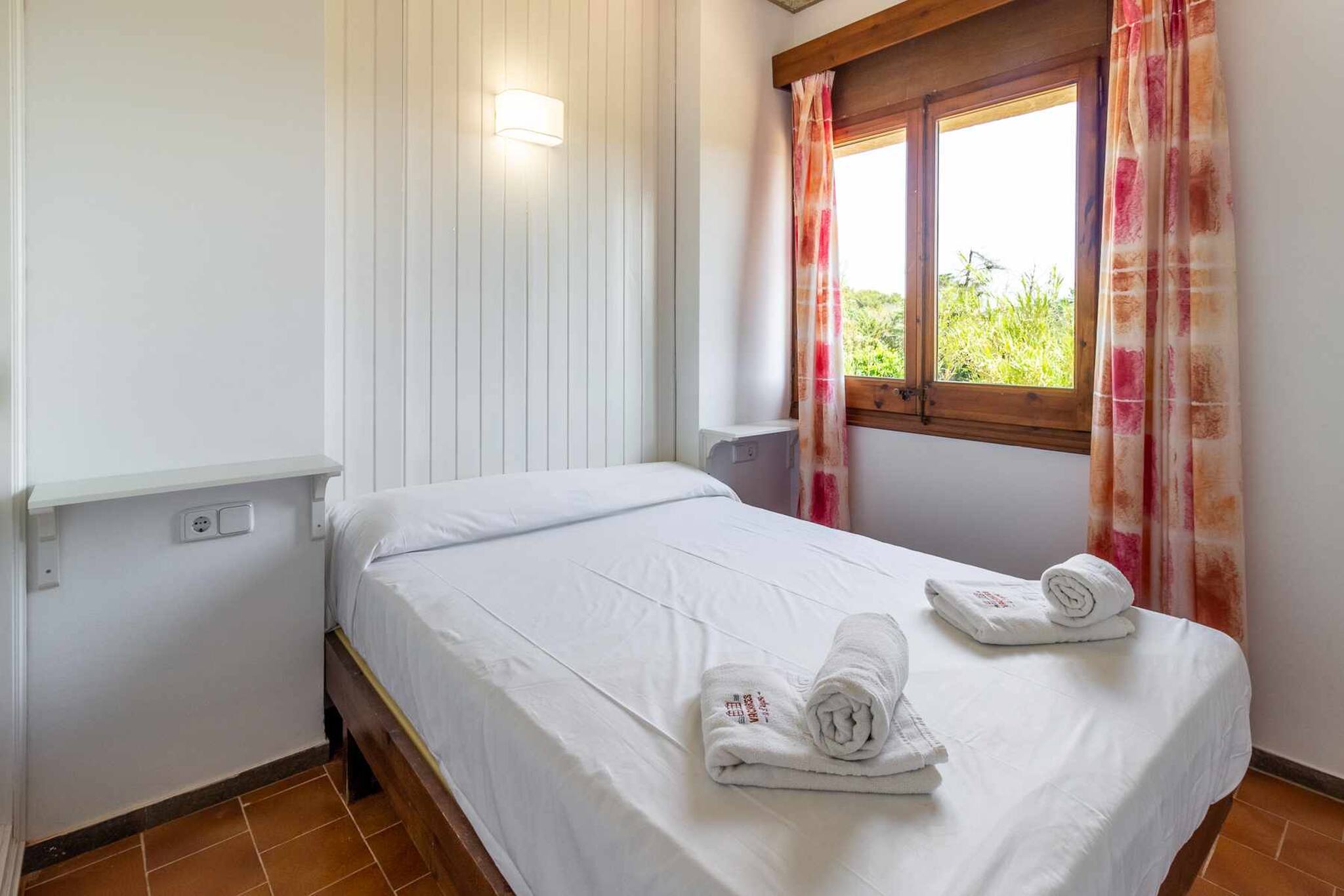 Habitacions: una habitació amb llit doble de matrimoni, armari, tauletes i penjadors. Habitació amb llit individual. Sofà llit al menjador. Roba de llit.
