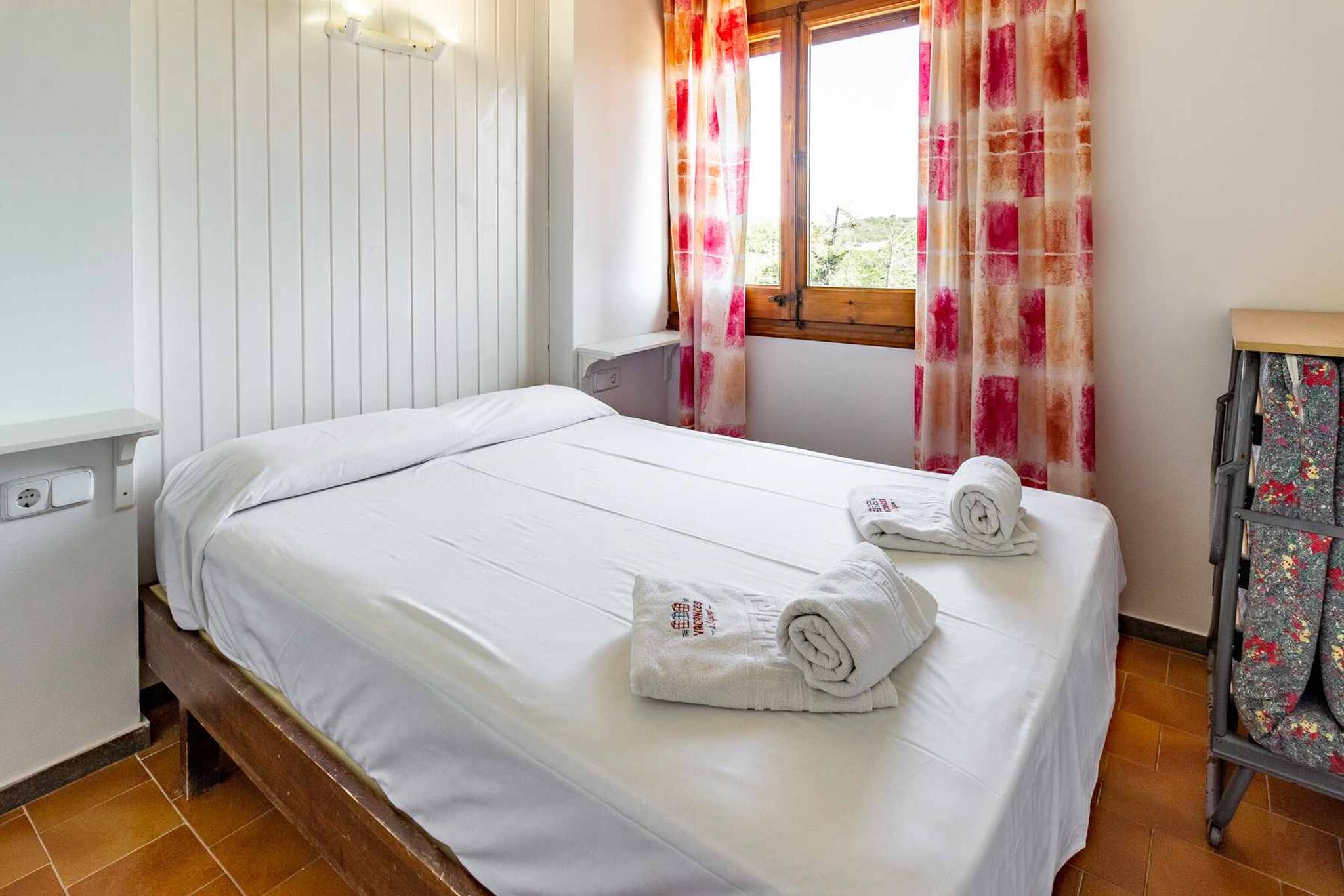 Habitacions: una habitació amb llit doble de matrimoni, armari, tauletes i penjadors. Habitació amb llit individual. Sofà llit al menjador. Roba de llit.