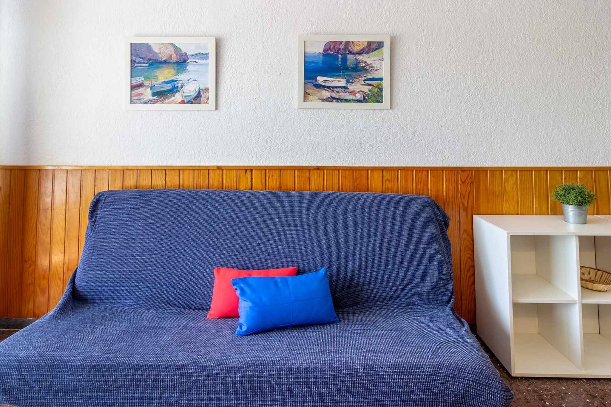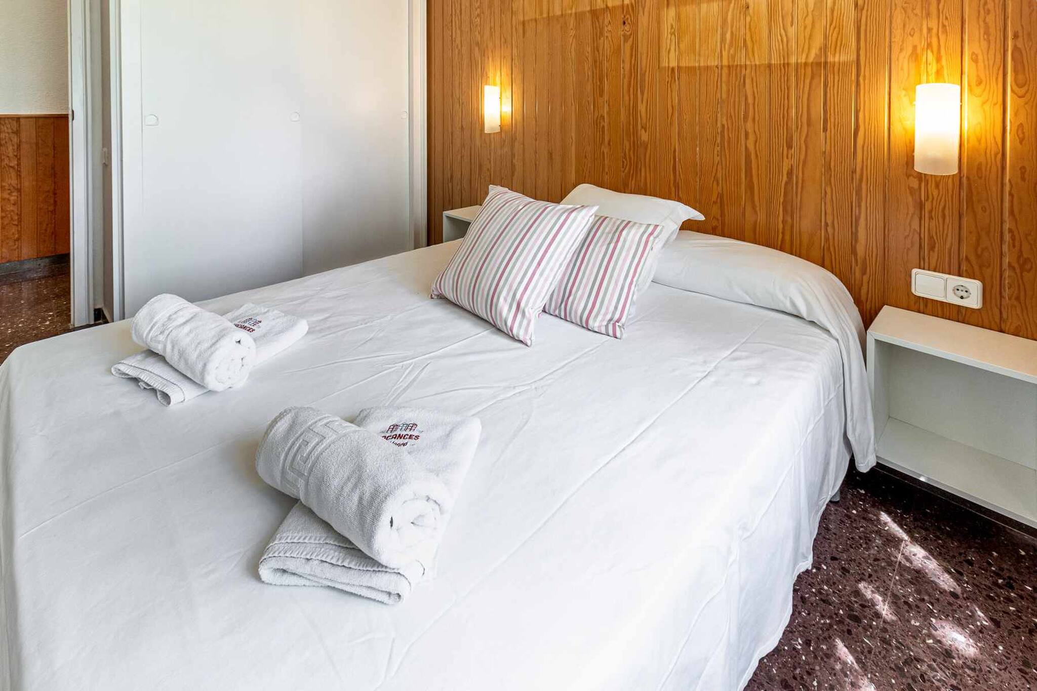 Habitacions: una habitació amb llit doble de matrimoni, tauletes, llums de lectura, armaris encastats. 1 Sofà llit individual al menjador. Roba de llit.