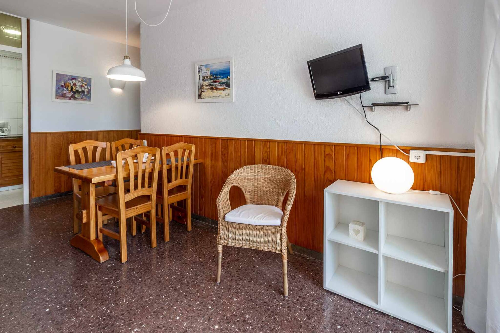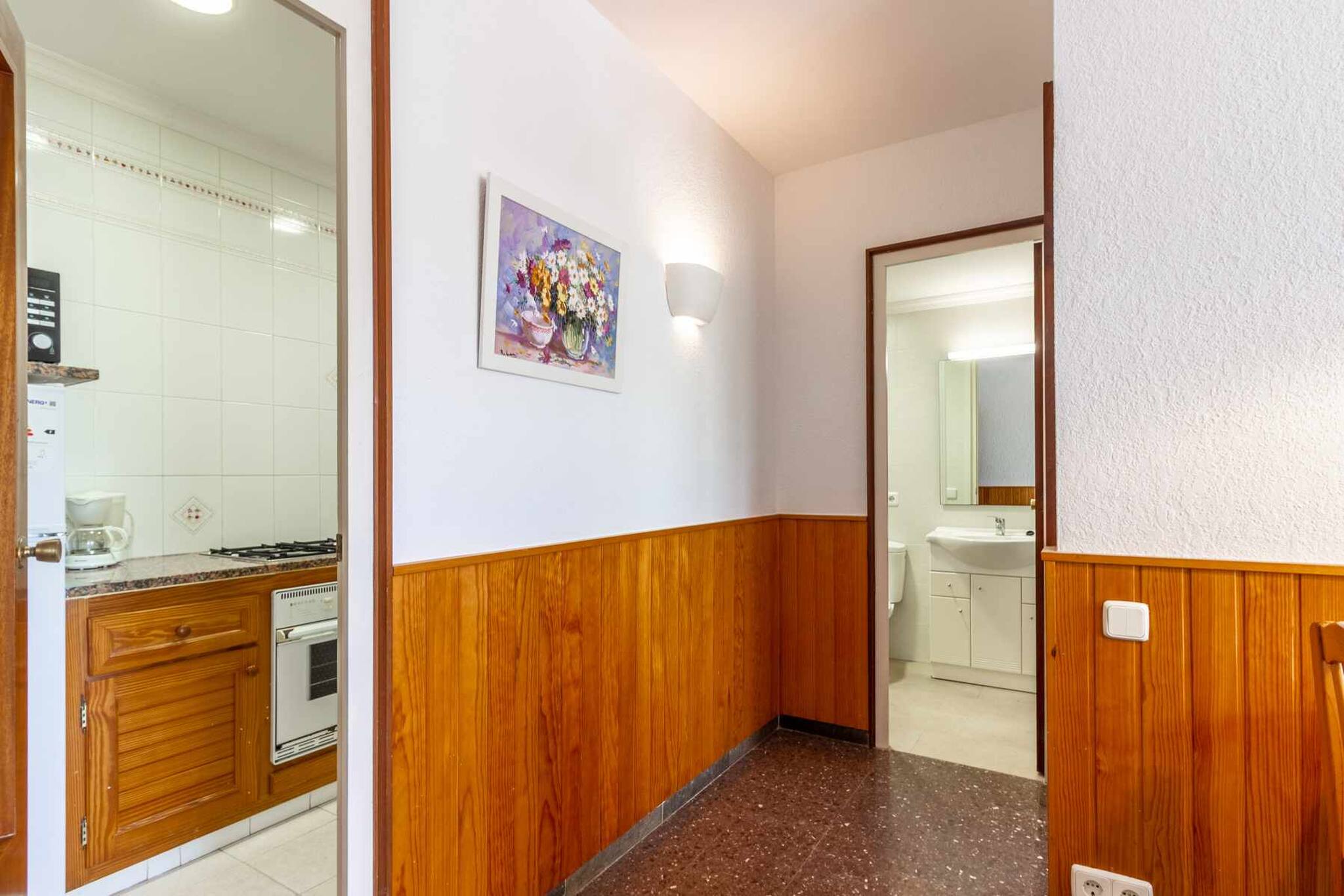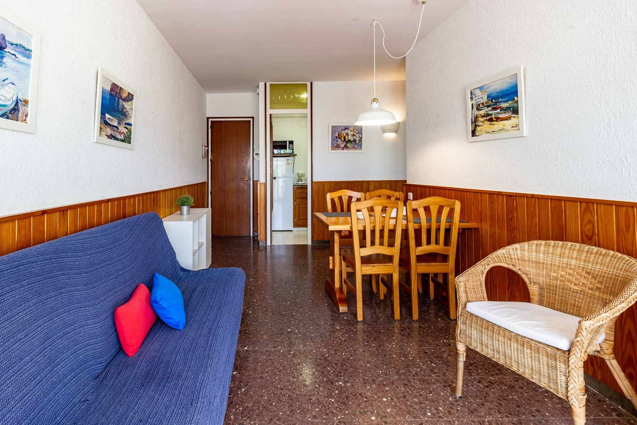 Disposa d'una habitació amb llit de matrimoni amb armaris encastats. Bany complet amb plat de dutxa. Cuina petita al costat del menjador, i sala d'estar-menjador amb un sofà llit individual, taula i cadires de fusta i sortida a la petita terrassa amb mobiliari d'exterior.