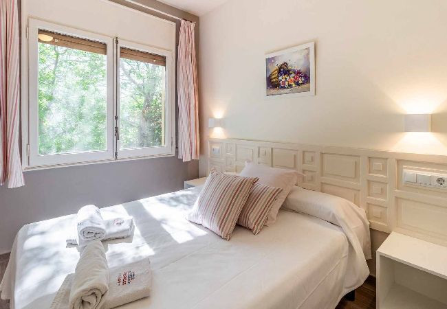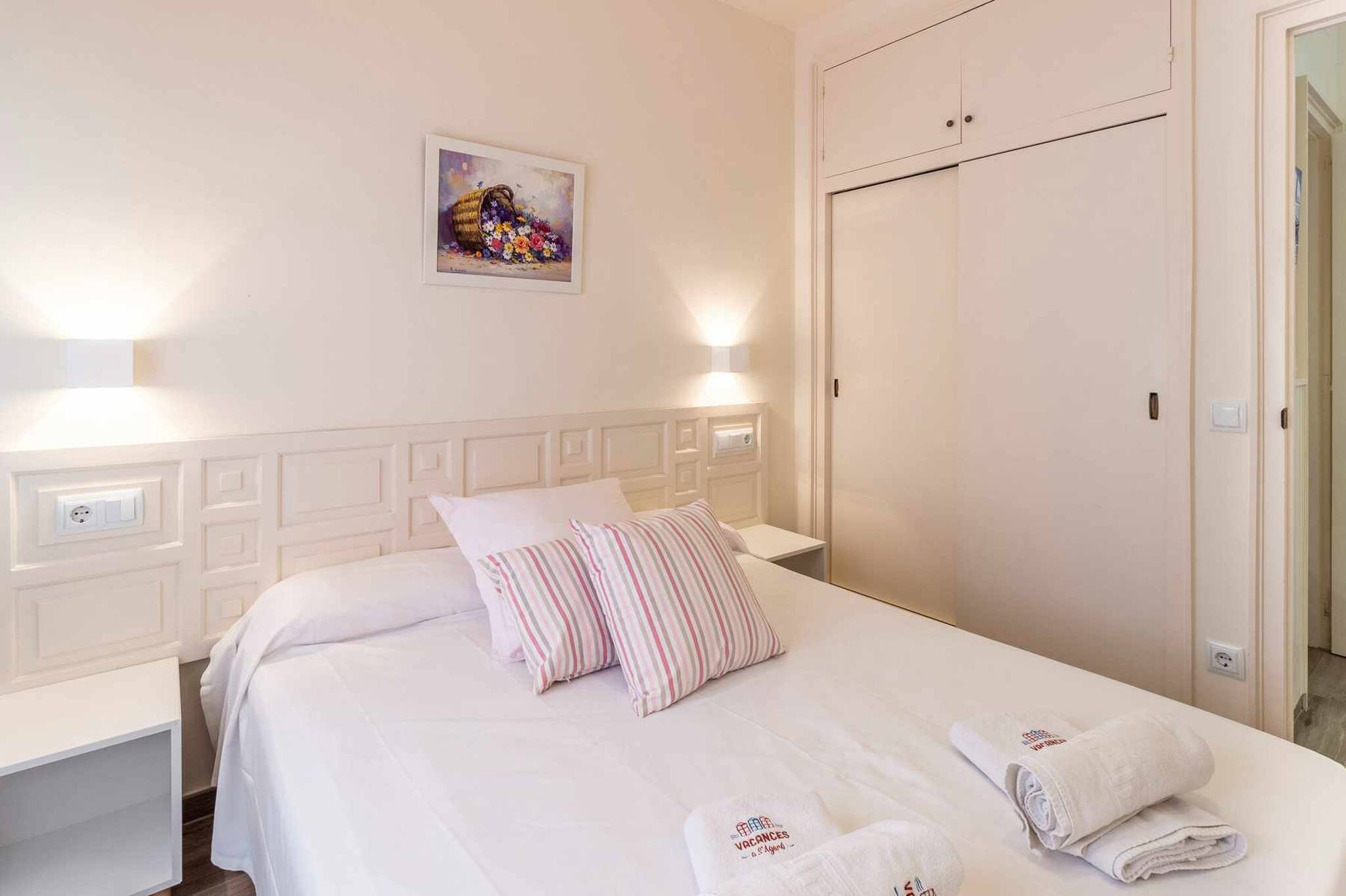 Habitacions: una habitació amb llit doble de matrimoni, tauletes, llums de lectura, armaris encastats. 1 Sofà llit individual al menjador. Roba de llit.