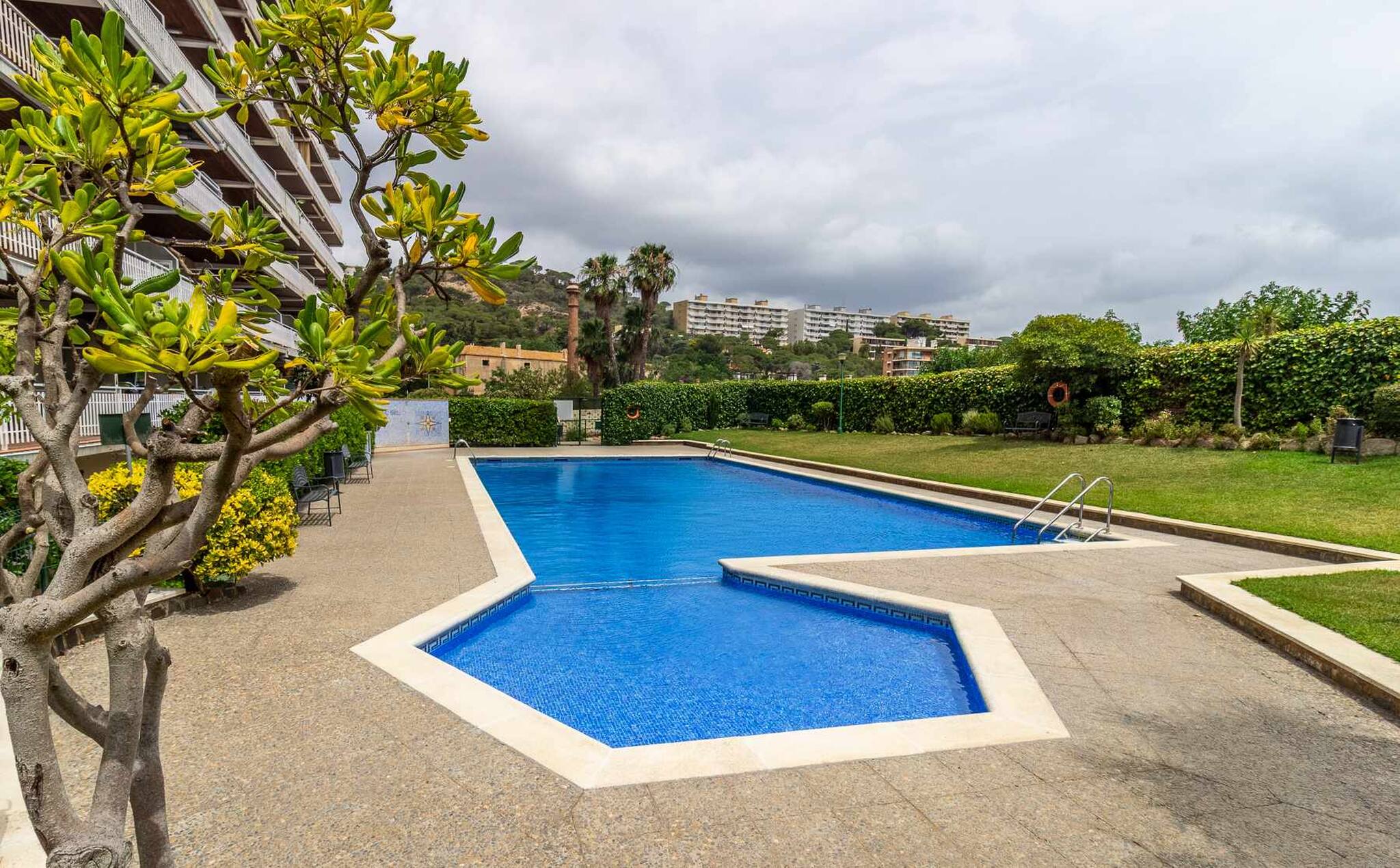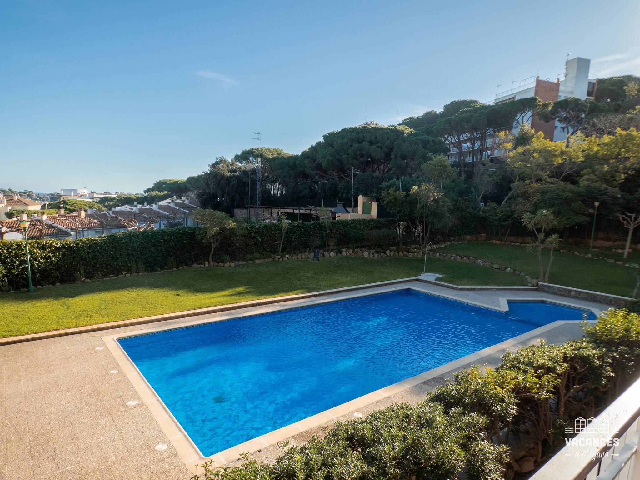 Apartament situat en un segon pis amb ascensor i vista sobre el jardí i piscina comunitària.