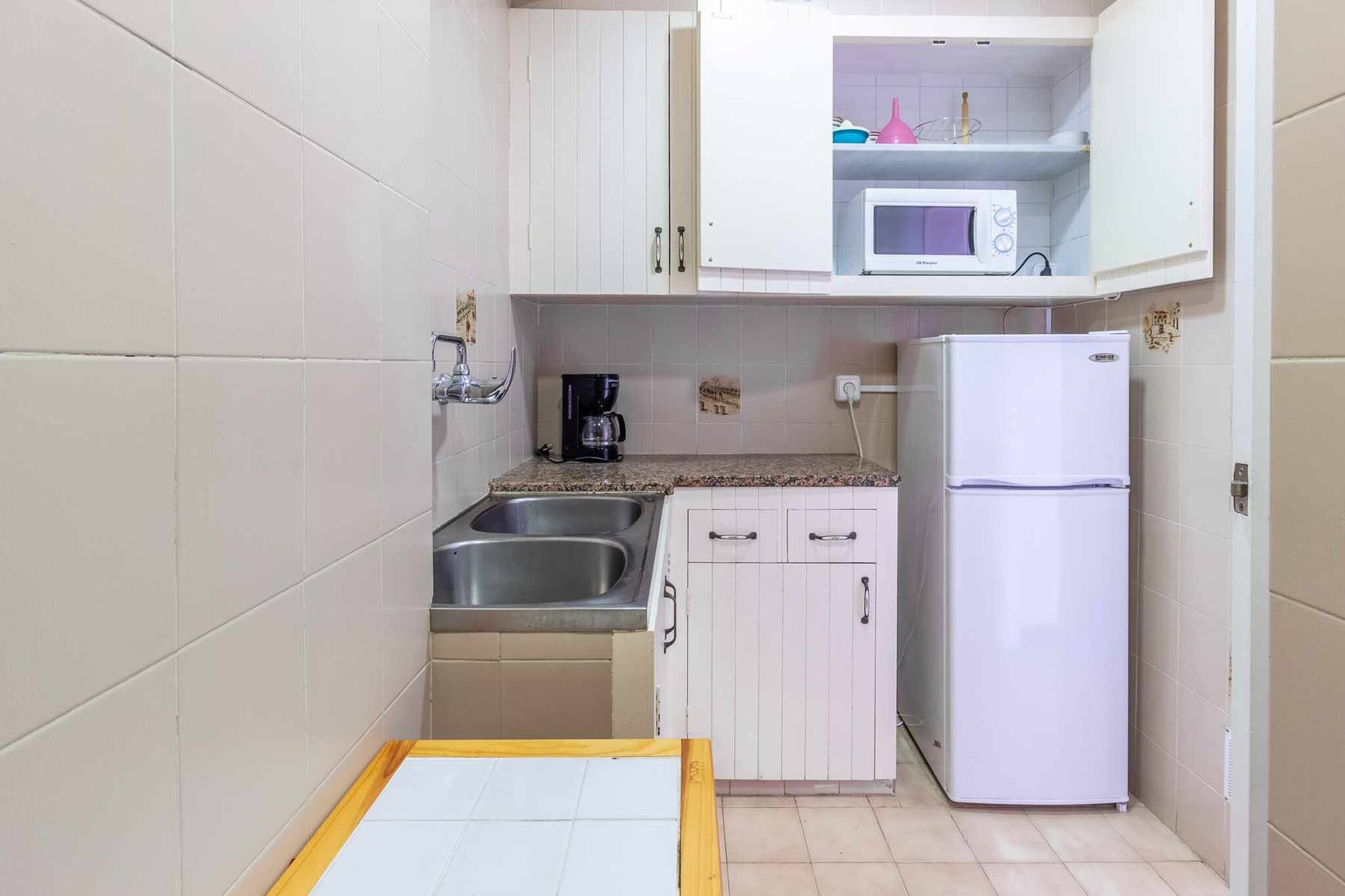 Cuina equipada amb nevera, congelador, fogons, microones, cafetera melita, vaixella.