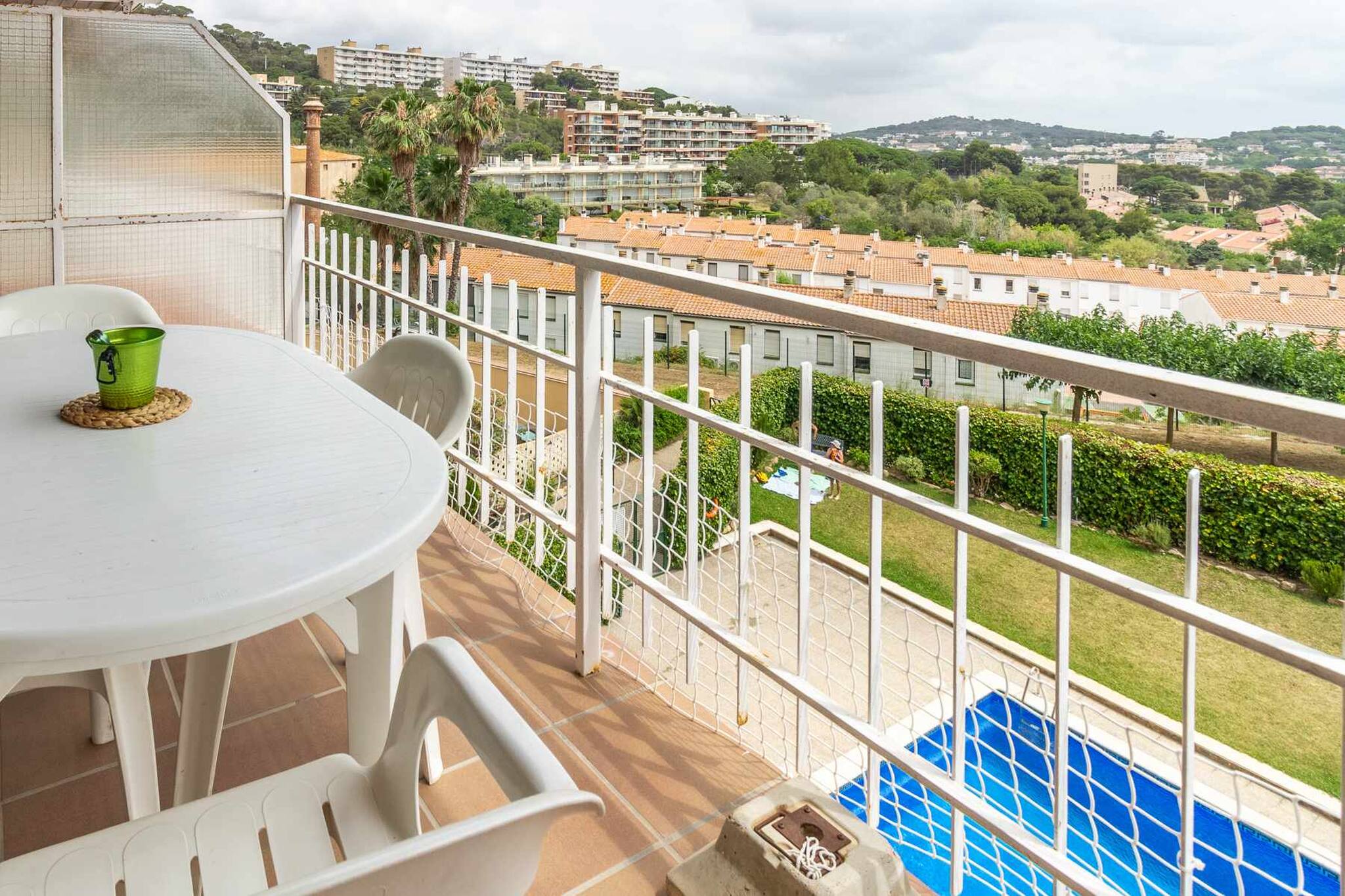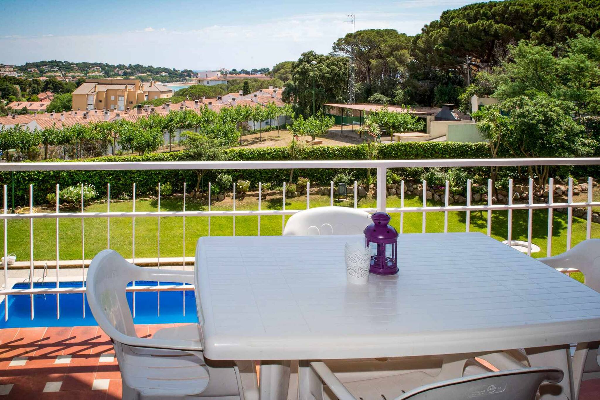 Exterior: terrassa assolellada amb mobiliari exterior i vistes.