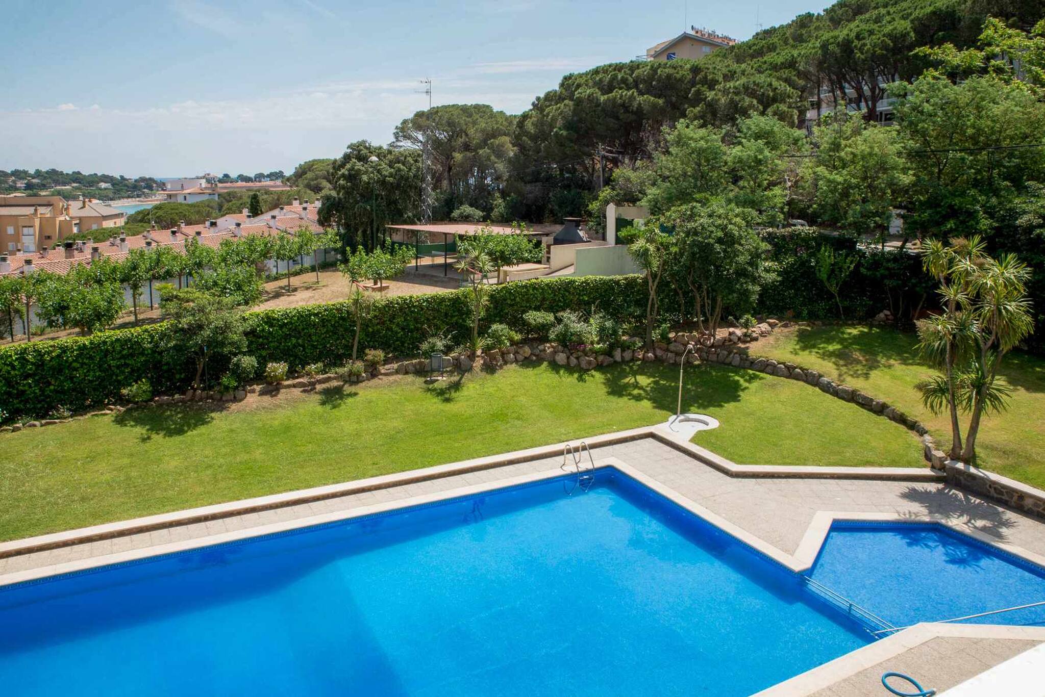 La comunitat compte d'una pista de tenis, piscina comunitària (també piscina pels més petits), zona de jocs infantils, barbacoes comunitàries i un gran pàrquing privat. L'edifici disposa de 4 ascensors. Des de la zona de les barbacoes s'accedeix al camí per anar a peu a la platja.