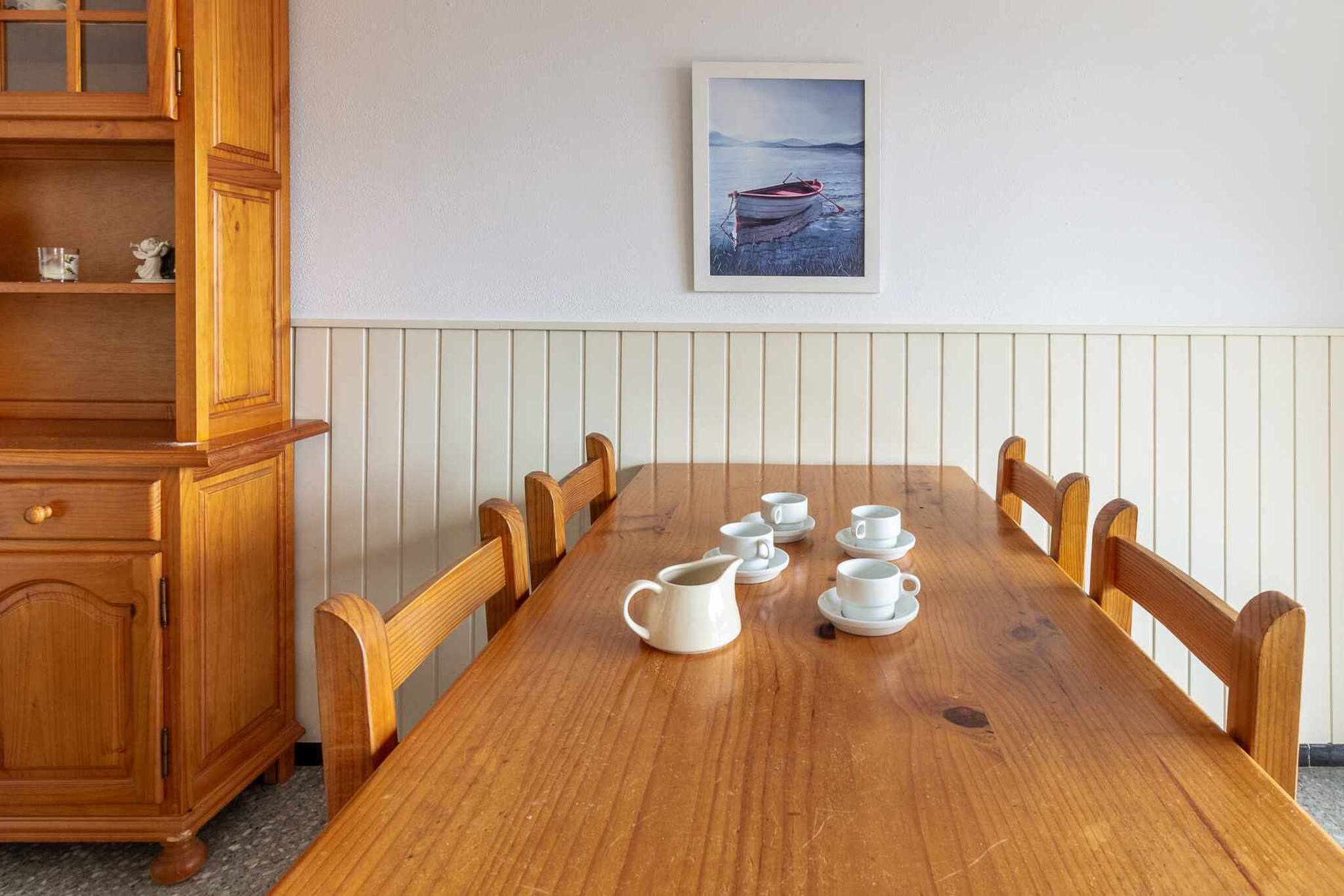 Disposa d'una habitació amb llit de matrimoni amb armaris encastats. Bany complet amb plat de dutxa. Cuina petita però ben equipada al costat del menjador, i sala d'estar-menjador amb un sofà llit individual, taula i cadires de fusta i sortida a la petita terrassa amb mobiliari d'exterior.