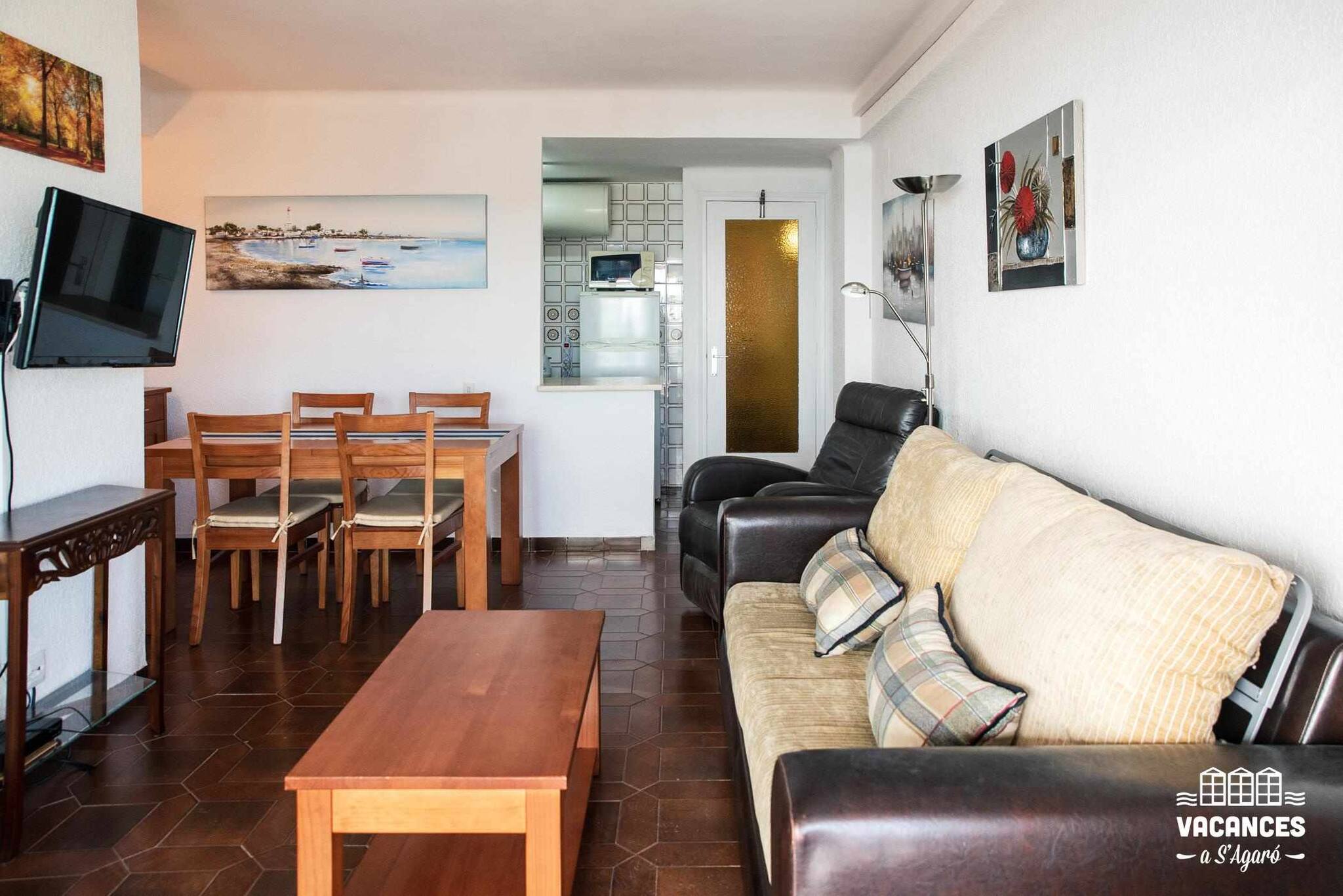 Ubicat al tercer pis sense ascensor d'un bloc residencial. Disposa d´una habitació doble amb llit de matrimoni amb sortida a la terrassa i TV. Una habitació amb dos llits individuals i sofà llit al menjador. Aire Condicionada i plaça de pàrquing. A 2 minuts de la fantàstica platja de Sant Pol. Acabat de reformar, bany complet amb plat de dutxa. Cuina i menjador ben equipats. La sala d´estar-menjador té sortida a la terrassa exterior, espaiosa per menjar i gaudir de la zona. Té mobiliari exterior.