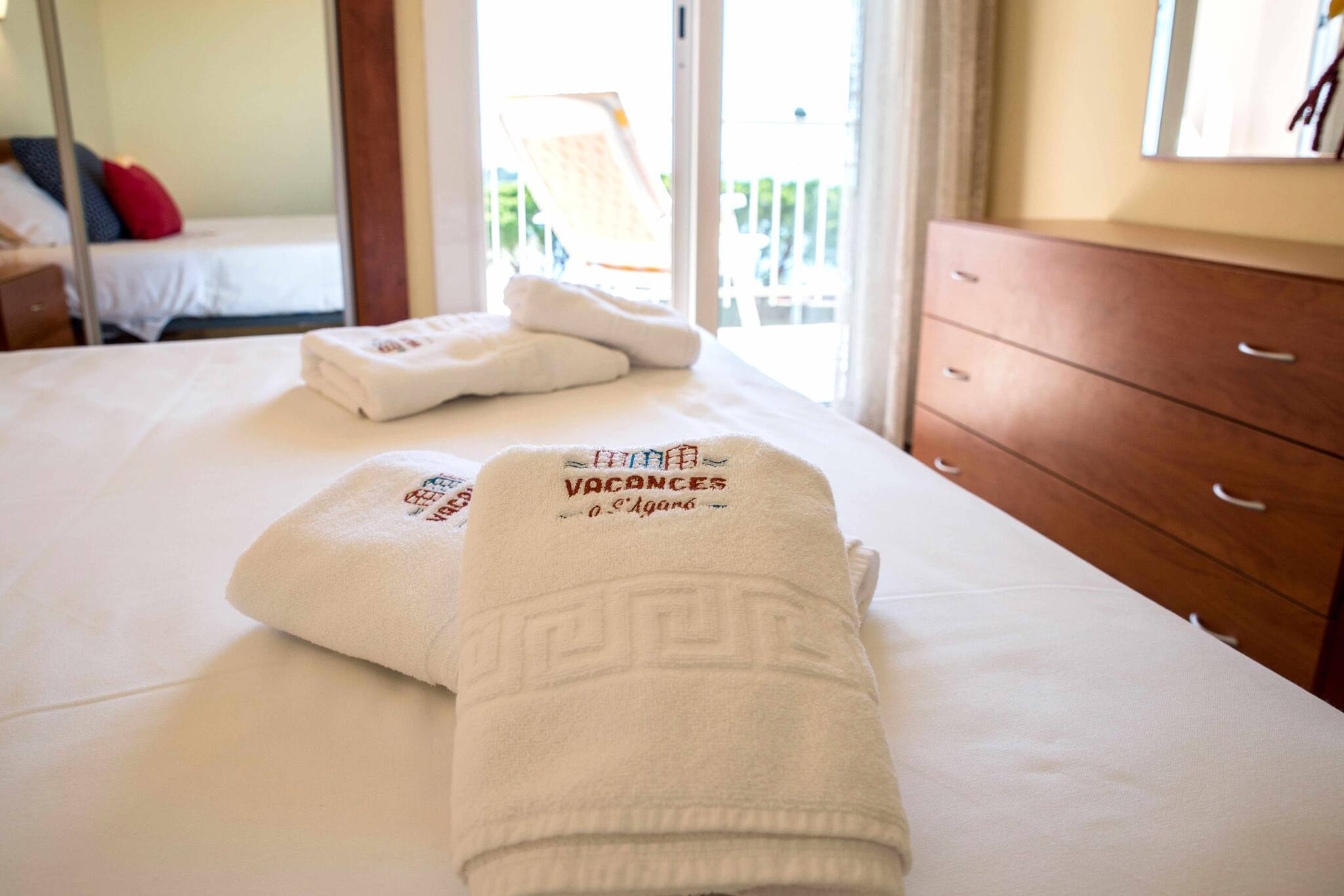 Habitacions: dues habitacions dobles, una amb llit de matrimoni i l'altre dos individuals. Tauletes, armari, calaixeres, llum de lectura i penjadors. Sofà llit doble al menjador. Roba de llit.
