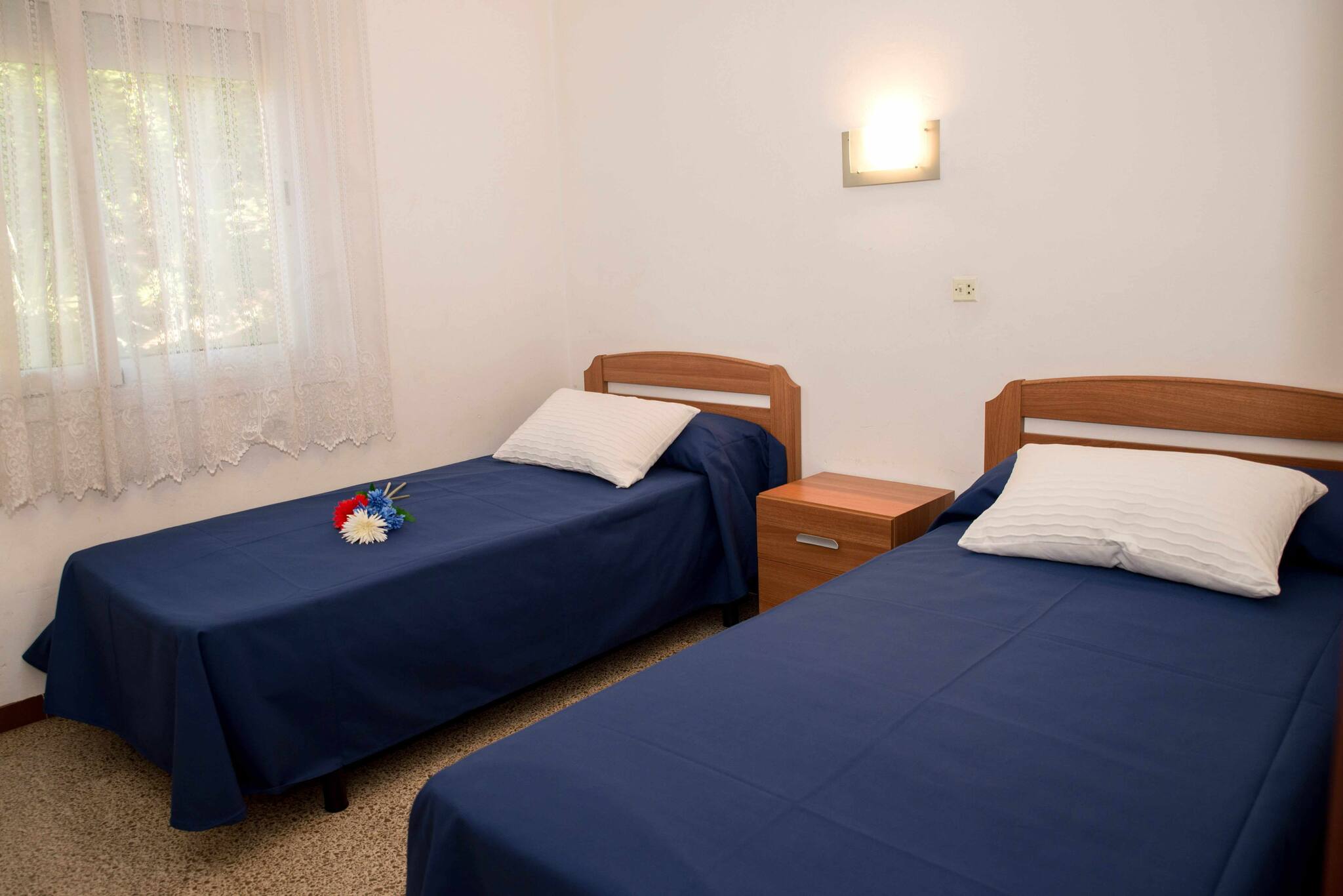 Habitacions: una habitació amb llit doble de matrimoni, una habitació amb dos llits individuals. Tauletes, armari, calaixeres, llum de lectura i penjadors. Sofà llit al menjador. Roba de llit.