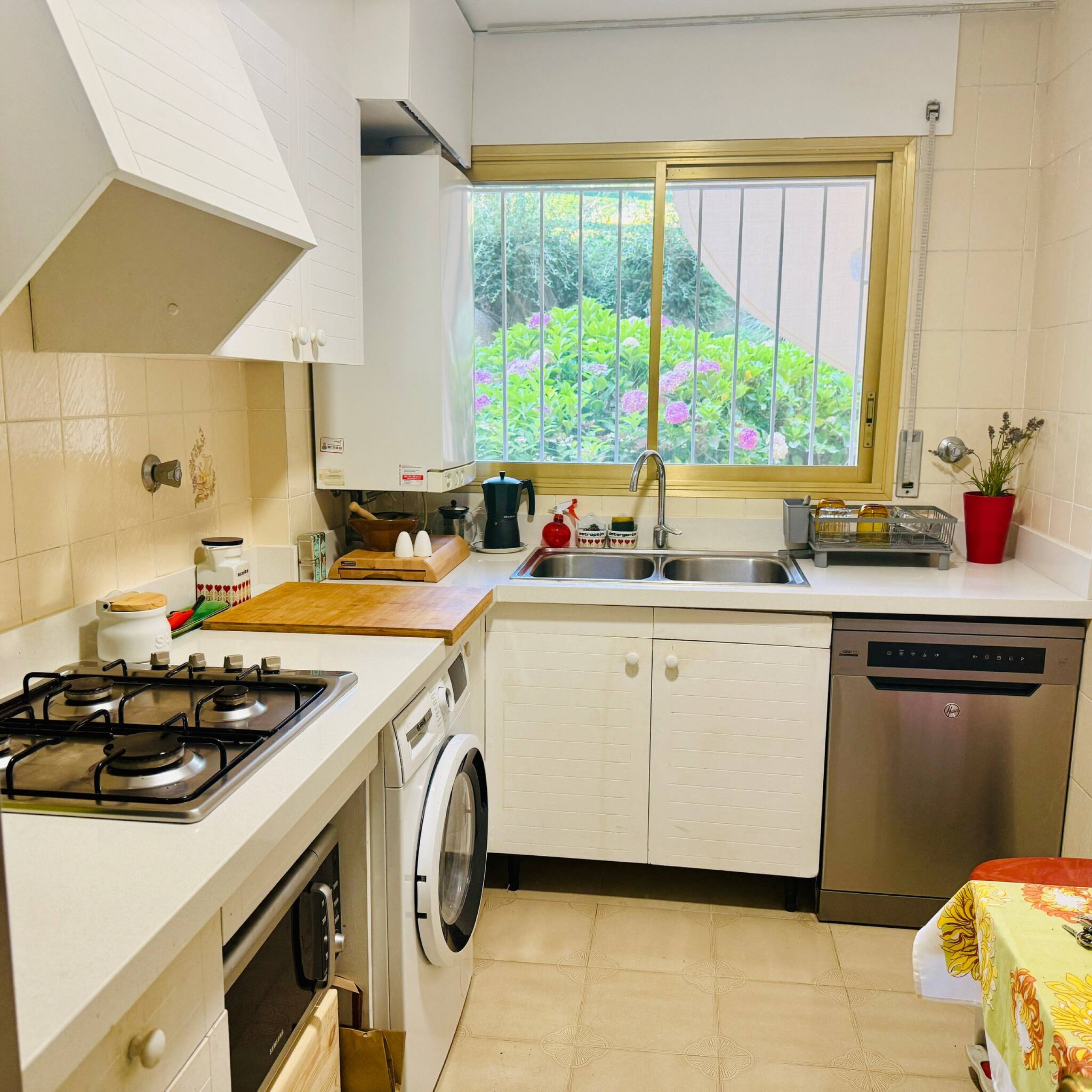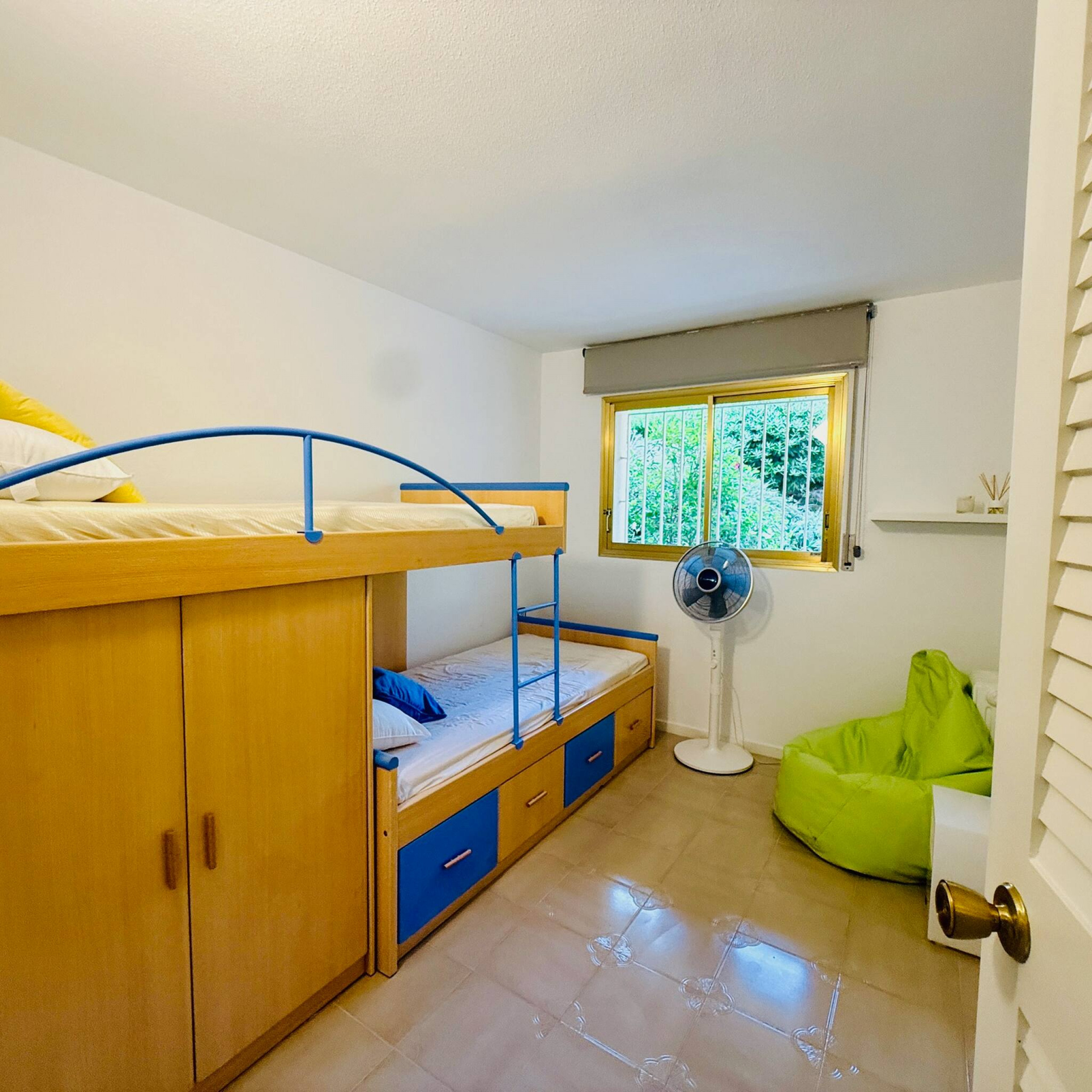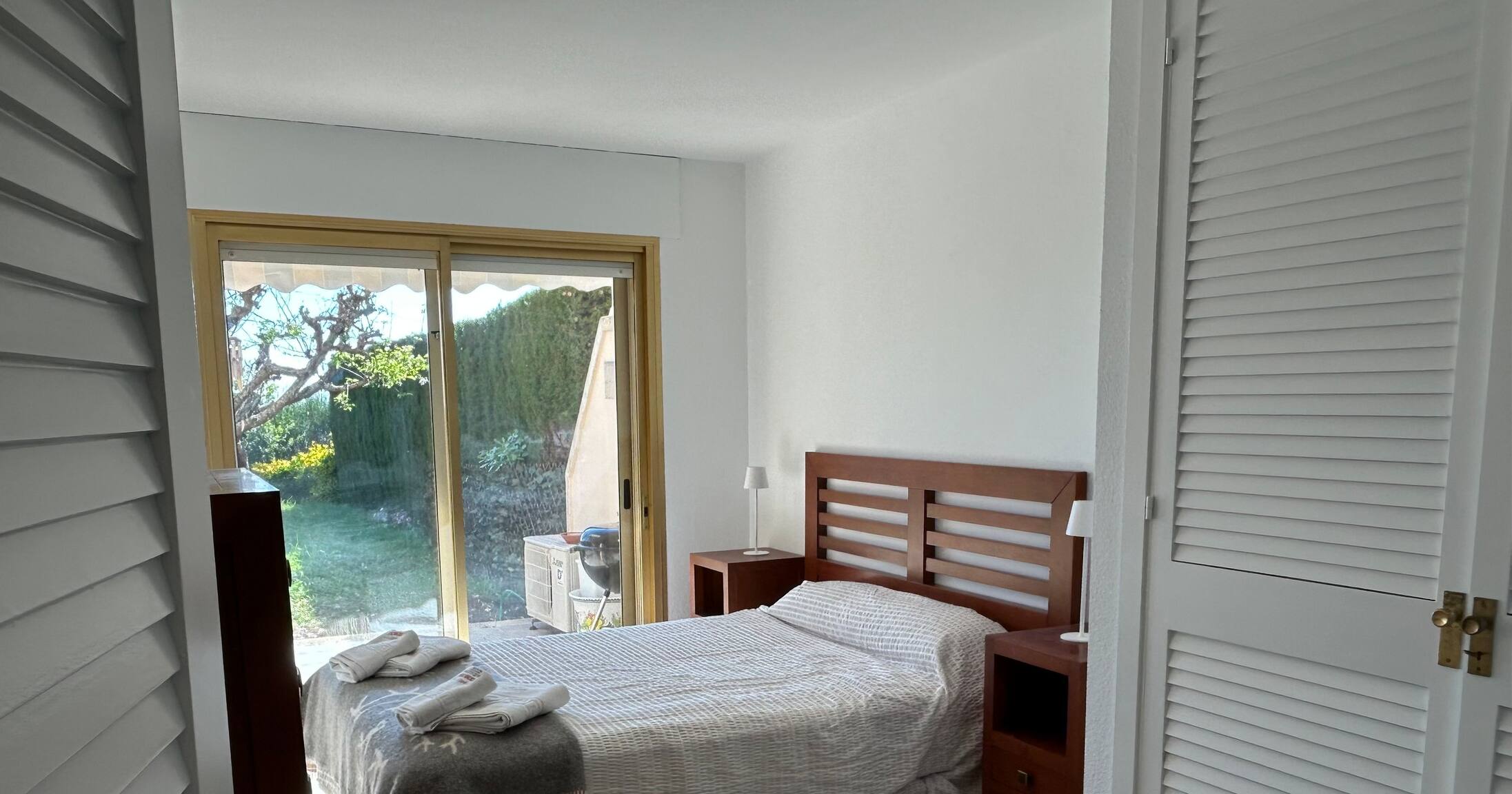 L´apartament disposa d´una cuina completament equipada, que dóna al saló menjador. Aquest saló menjador, unit a una terrassa i al jardí privat, fa una gran sensació d'amplitud. Perfectament moblat, amb wifi, Smart TV i Aire condicionat i també amb mobles exteriors. En paral·lel a aquest saló hi ha el dormitori tipus suit, també amb sortida al jardí. I a l'altra banda un dormitori amb 2 llits individuals i un bany completament reformat que dóna servei a aquest dormitori.