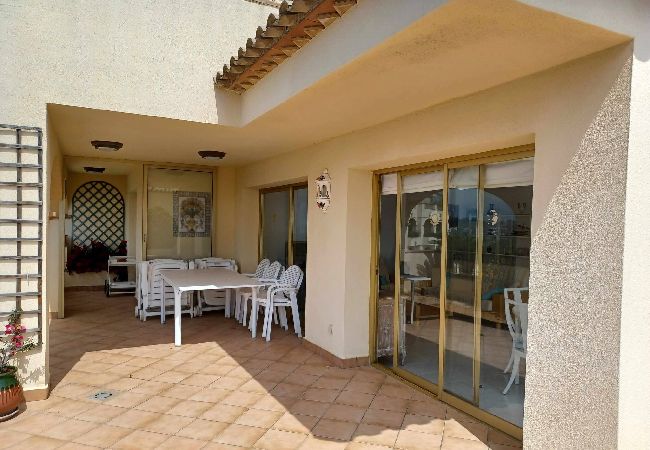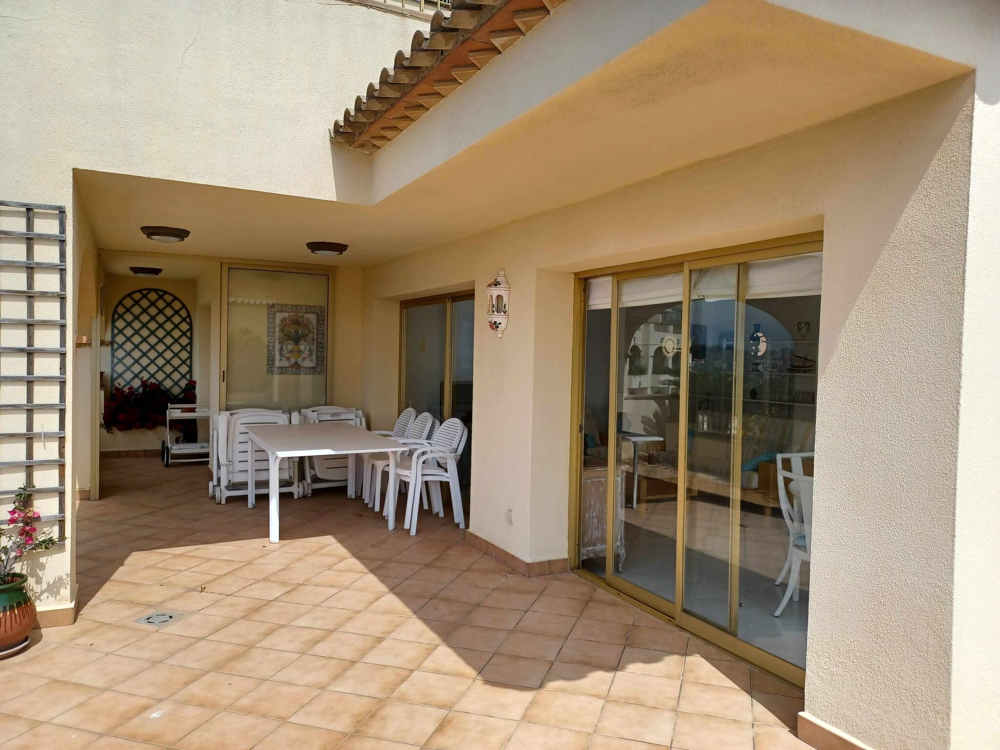 La gran terrassa exterior ocupa tota la façana de l'apartament. Té mobiliari d'exterior i vistes. Wifi, calefacció central, jardí amb piscina comunitària i plaça de parquing nº 15.