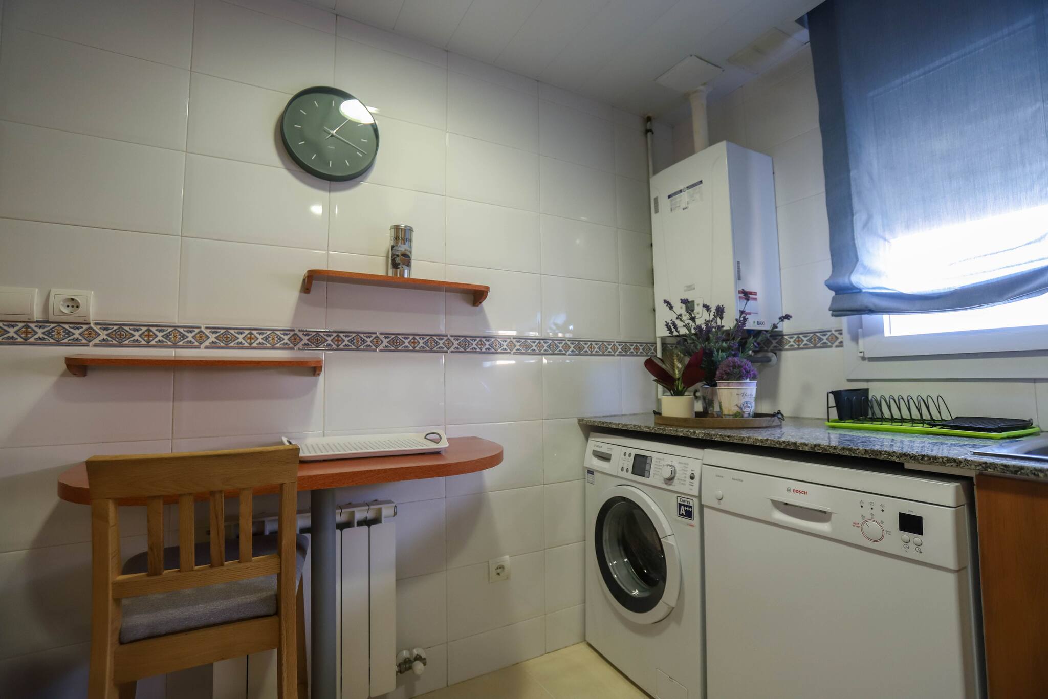 Cuina amb vitroceràmica d'inducció, cafetera Nespresso, rentaplats, microones, forn, torradora, assecador, planxa, kettel, ventiladores... Tot el necessari per passar uns dies còmodament al centre de Sant Feliu, molt a prop de la platja, però en una zona molt tranquil·la. A 5 minuts de la zona de vianants i 10 minuts de la Platja Gran de Sant Feliu.